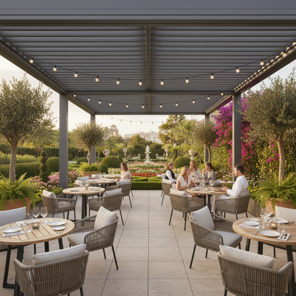 Installer une pergola professionnelle ou une protection solaire adaptée aux cafés, hôtels et restaurants permet :