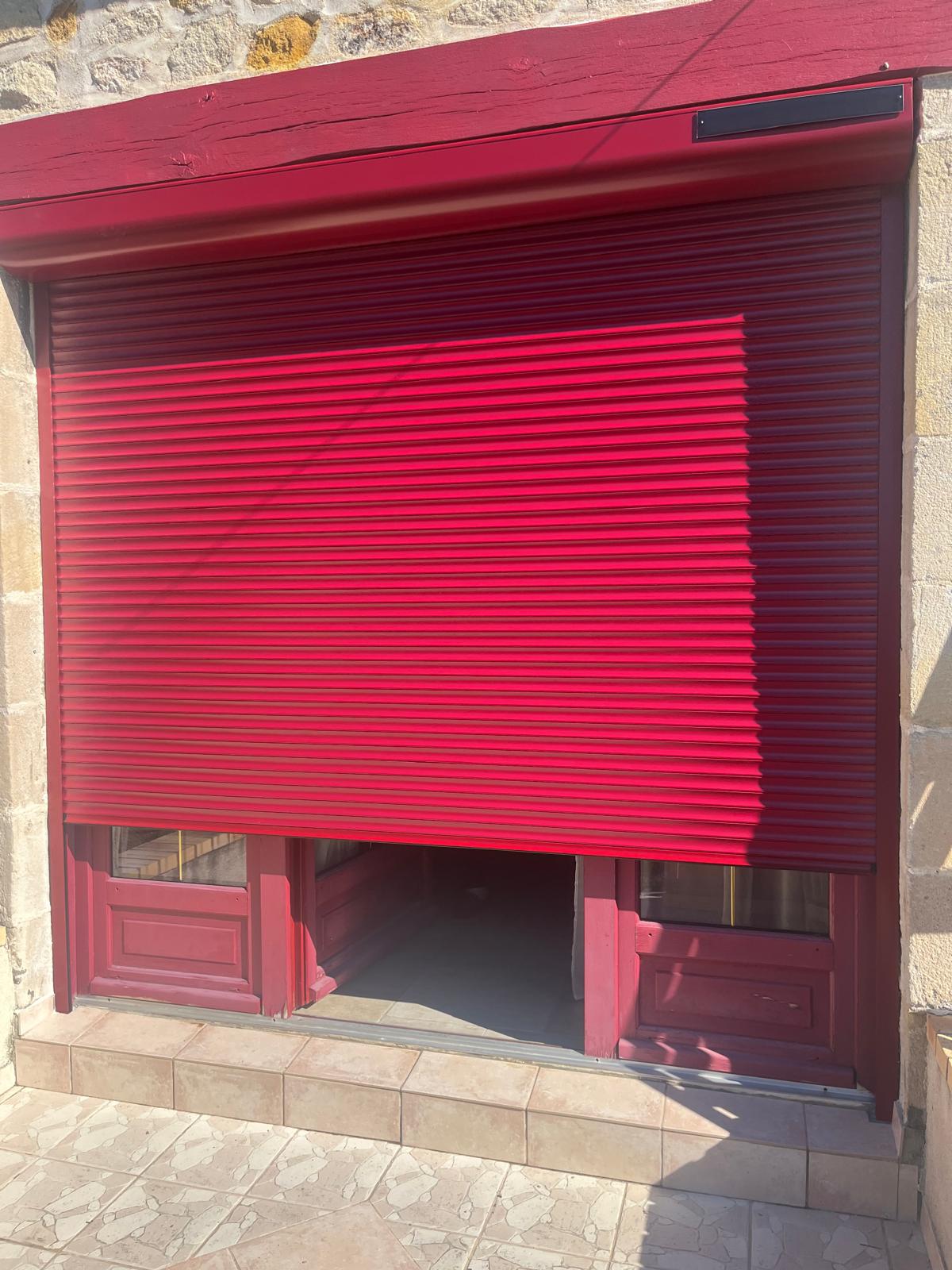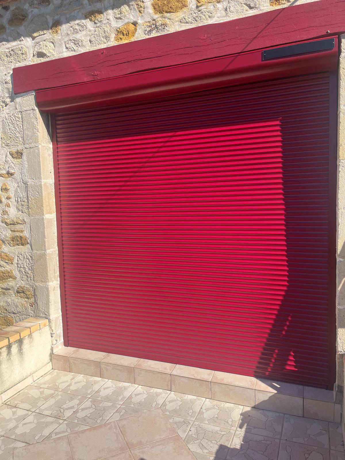 Dans le cadre de ce projet réalisé à Roanne, notre équipe a installé un volet roulant aluminium sur mesure, avec une finition rouge intense qui apporte du cachet à cette façade en pierre.
